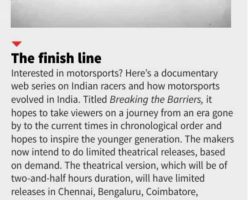 The best way to experience a true story is to live the story. Breaking the Barriers is one such story that will take the viewer on the journey of motorsport filled with amazing action, emotion and glory, all narrated in great passion & emotion by the racers themselves. This series will enlighten and gives an Indian perspective on how things evolved from the start to current day.
